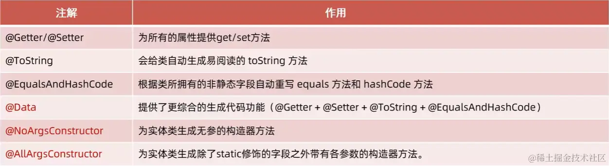 Lombok是一个实用的]ava类库,能通过注解的形式自动生成构造器、getter/setter、equals、hashcode、tostring等方法,并可以自动化生成日志变量。