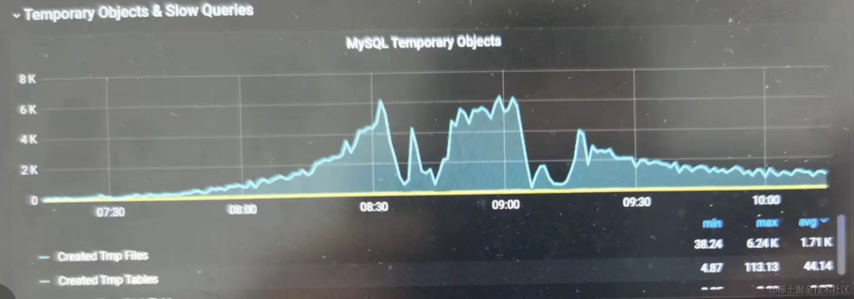 首先,ChatDBA 准确的识别出了监控图像的内容,同时也猜测虽然参数配置的合理,但是临时文件过多是导致该问题的主要原因,通过查看监控也发现,确实临时文件在报错期间增长很快。