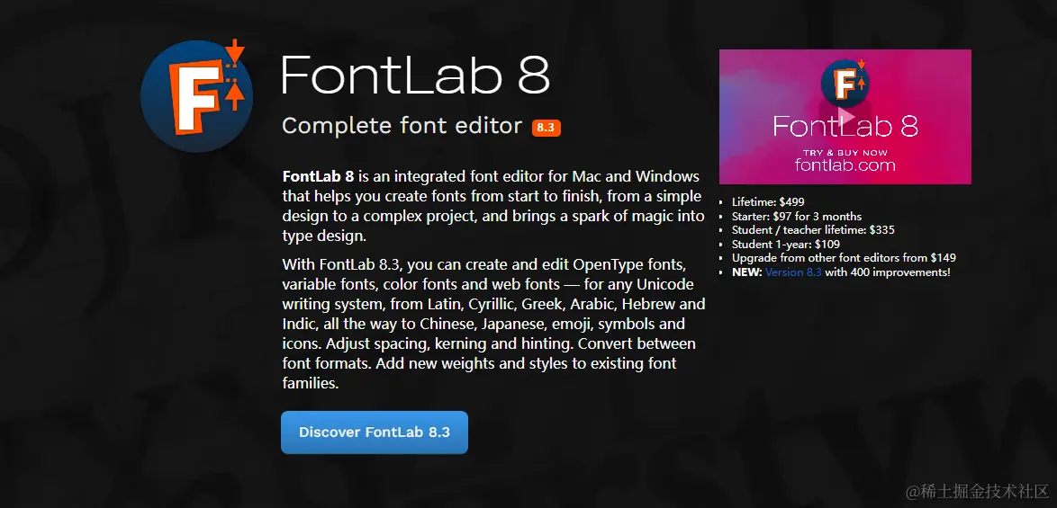 FontLab 是一款功能全面的字体设计软件,适用于专业字体设计师。它支持多种字体格式,包括OpenType、TrueType和Web字体。