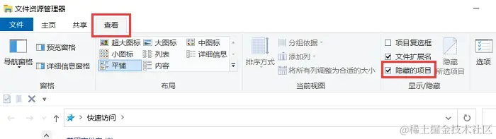 那么怎么查看隐藏的文件呢?我们可以先按下快捷键**【Win+E】组合键打开【文件资源管理器】,在顶部的菜单栏中选择【查看】。然后勾选【隐藏的项目】**前面的方框,此时隐藏的文件就会被正常显示。