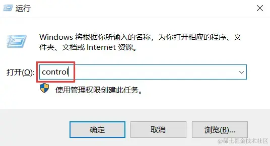 第1步:文件夹里的文件看不见了怎么办?按下快捷键**【Win+R】打开命令提示符的窗口,输入【control】并点击【Enter】**键。