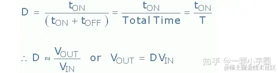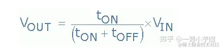 如果V IN是电源电压,并且晶体管开关的“ON”和“OFF”时间定义为:t ON和t OFF,则输出电压V OUT为: