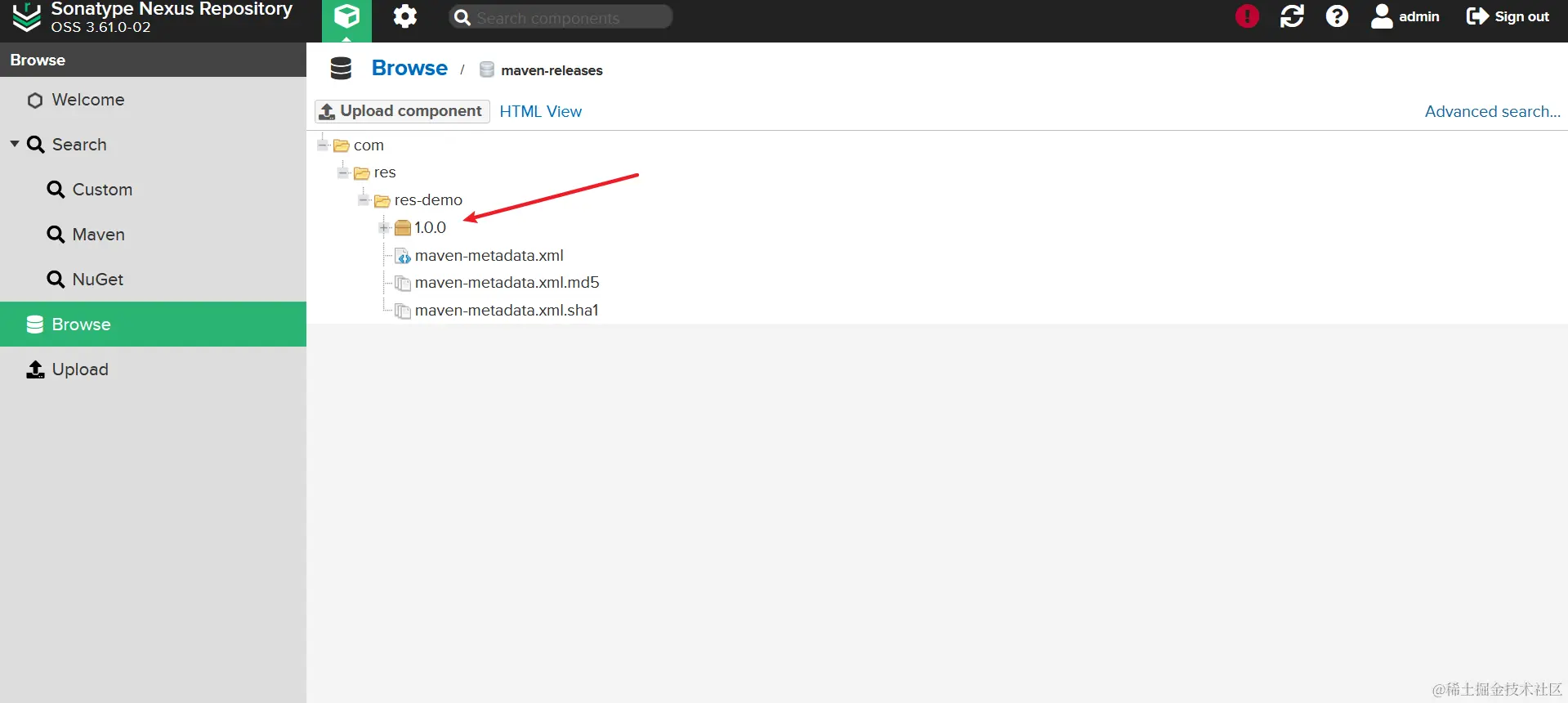 等待下载完成我们刷新对应的仓库可以发现 jar 包已经下载到 Nexus 里面了。