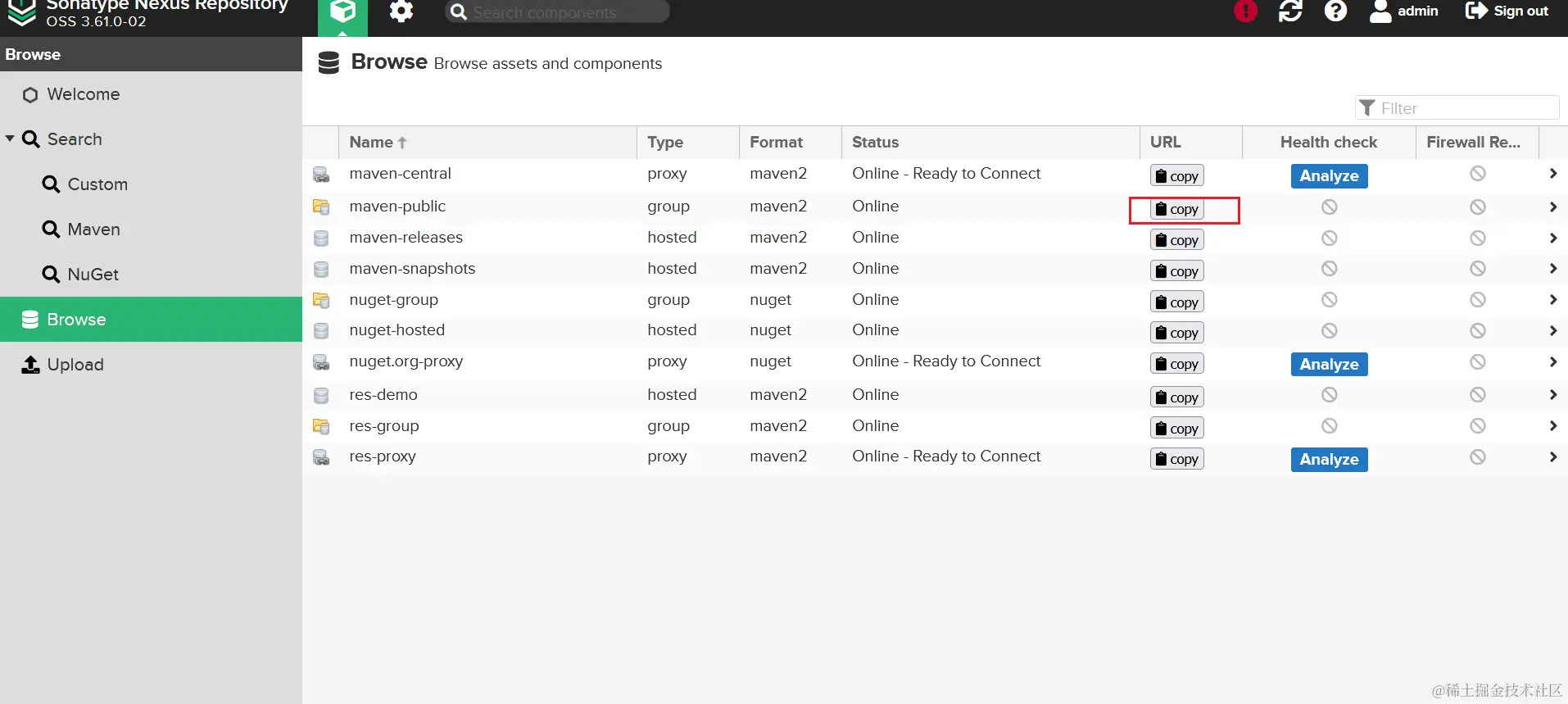 把上图中看到的地址复制出来即可。如果我们在前面允许了匿名访问,到这里就够了。但如果我们禁用了匿名访问,那么接下来我们还要继续配置 settings.xml: