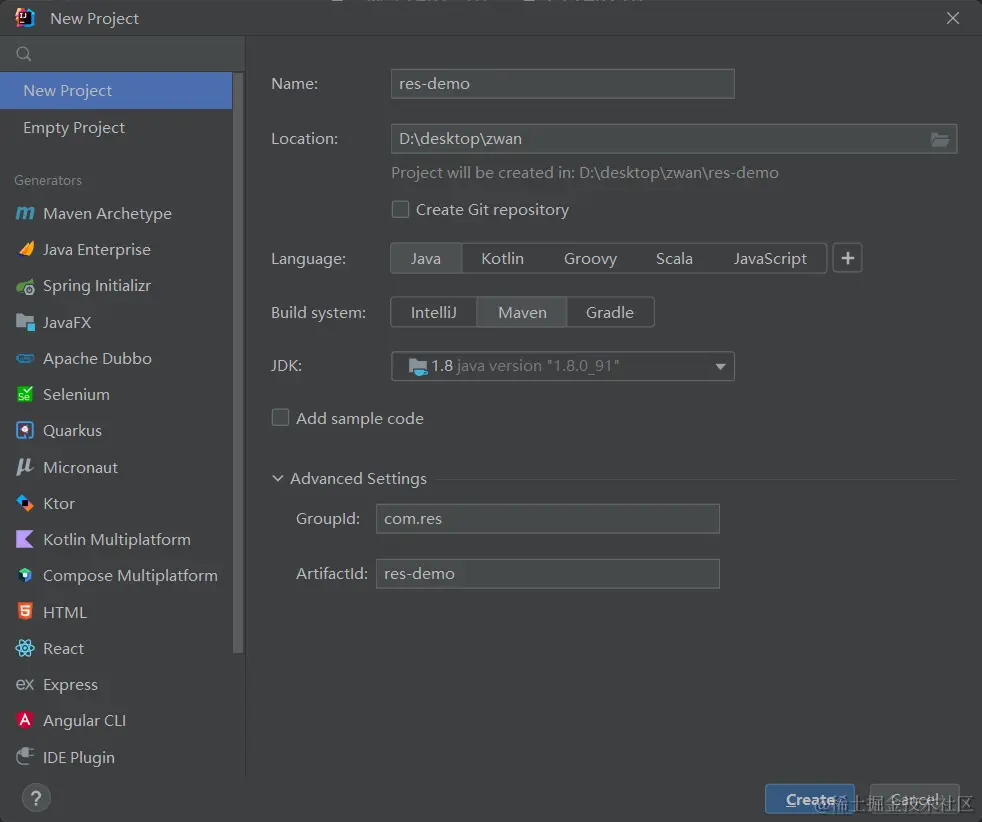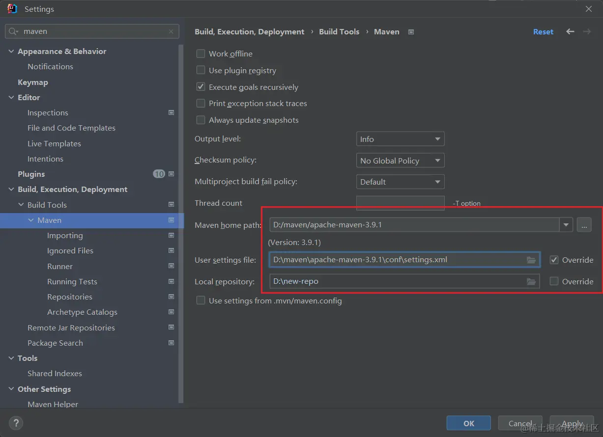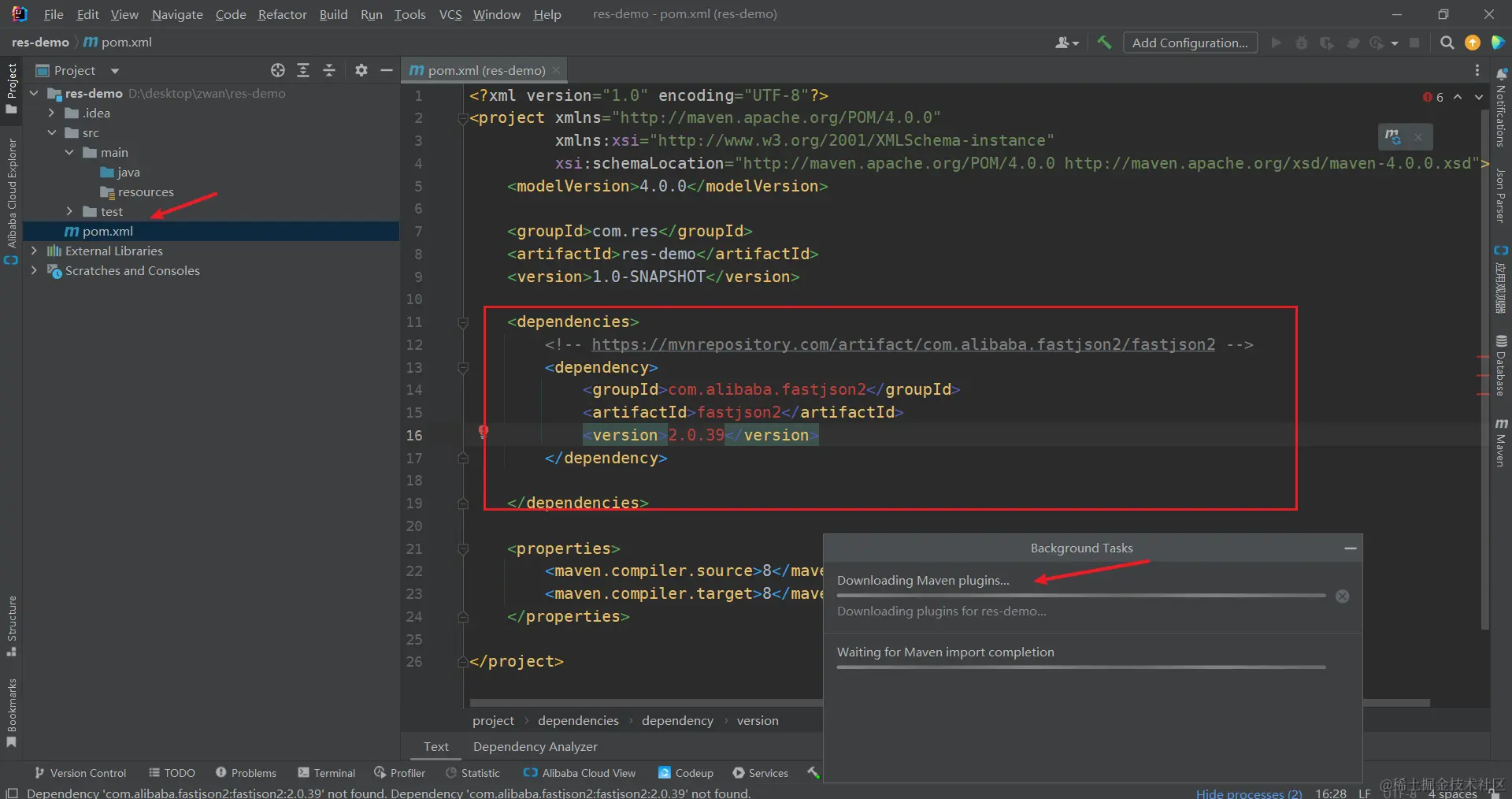 接下来我们新建一个 Maven 项目然后引入一个依赖(这里我用 fastjson2 举例)来验证 jar 包是否是通过 Nexus 下载的。新建项目之后修改项目的 Maven 配置以及引入依赖。