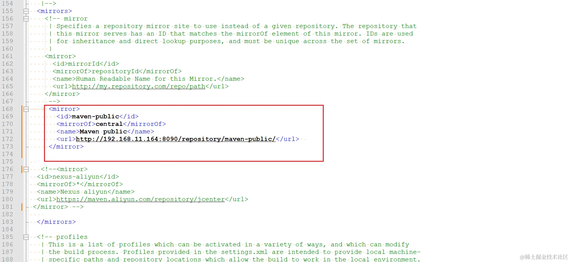 <url>http://192.168.11.164:8090/repository/maven-public/</url>