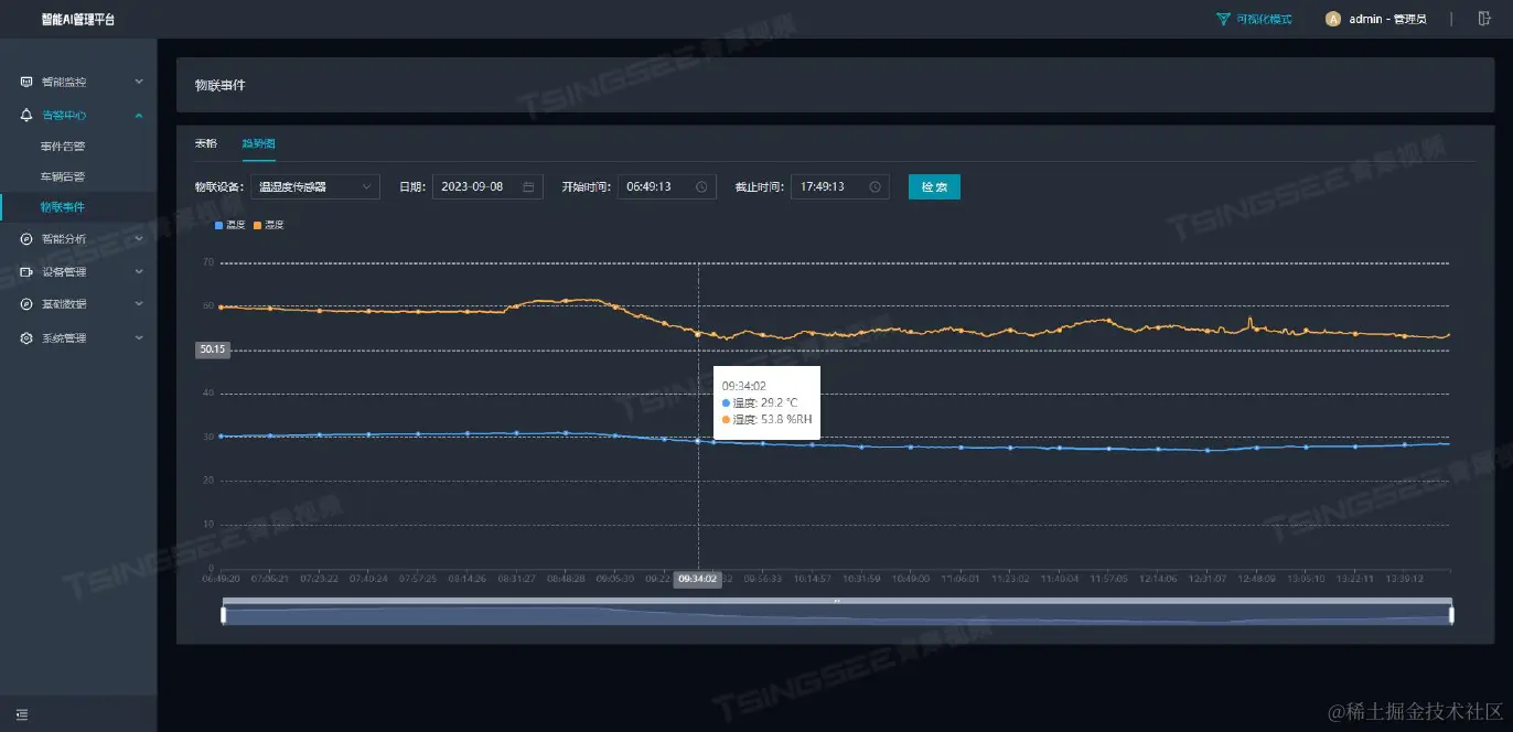 机房内的温湿度环境对设备的正常运行具有重要影响。通过安装温湿度传感器并接入到TSINGSEE青犀AI智能分析网关V4中,可以实时采集和监测机房内的温度和湿度数据。管理人员可以根据实时数据调整机房内的环境参数,确保设备在适宜的环境下运行。