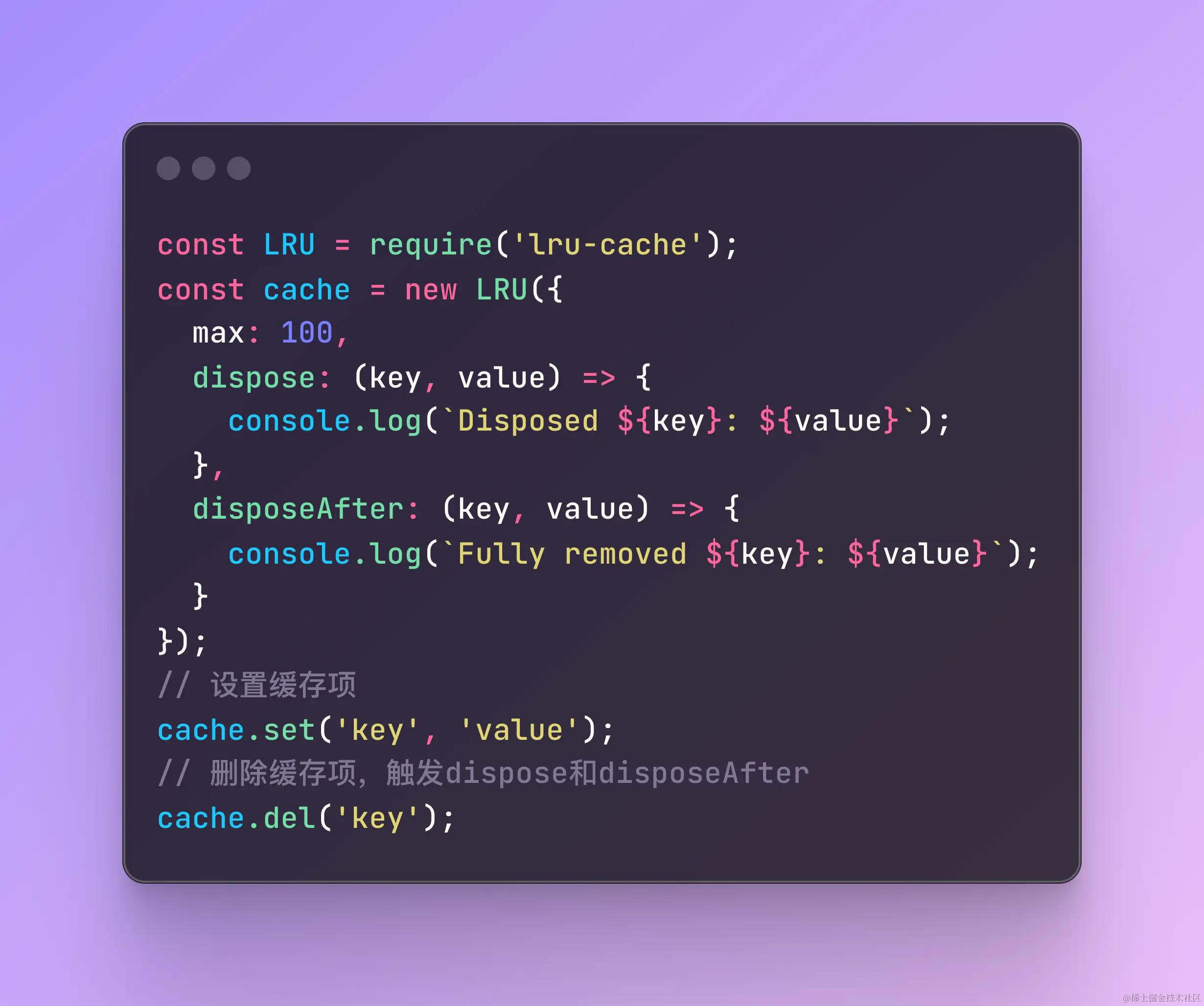 使用dispose和disposeAfter选项,可以在缓存项被移除时执行自定义逻辑,例如做一些链接的关闭之类的。