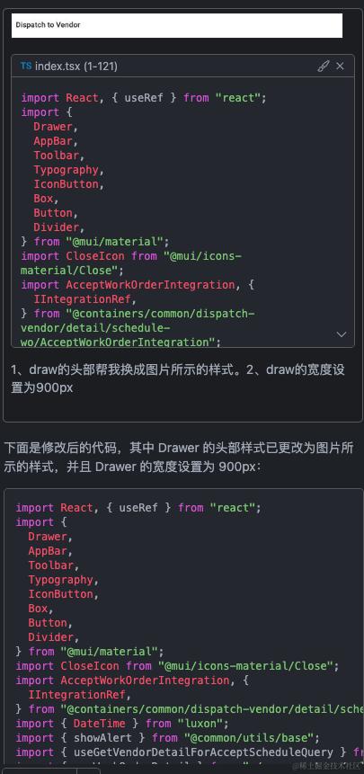 如上,我们选择了Mui Business Component Agent作为 Model Provider,输入需求,即可生成正确的业务组件代码。