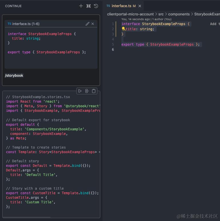 使用:选择 interface.ts 文件,输入/storybook命令: