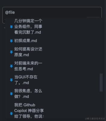 比如,我可以通过@file来选择文件作为上下文: