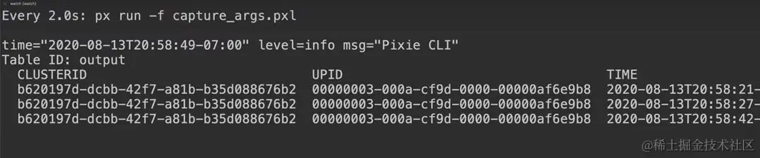 捕获度量和 CPU 分析功能可能是大多数 eBPF 实施中的可观测性解决方案的标准功能。让 Pixie 真正脱颖而出的功能之一是其动态日志记录功能,这是调试应用程序的一个改变游戏规则的功能。通常情况下,如果你发现应用程序中的功能不能如预期地运行,并且需要向其中添加日志记录,那么你需要编辑、重新编译和重新部署你的代码。动态日志记录是 Pixie 中的一个 Alpha 功能,它允许用户在函数运行时向其中添加日志记录。本文展示了如何使用简单的脚本为二进制文件添加新功能。该函数能够捕获参数并将输出写入表中,如下所示。