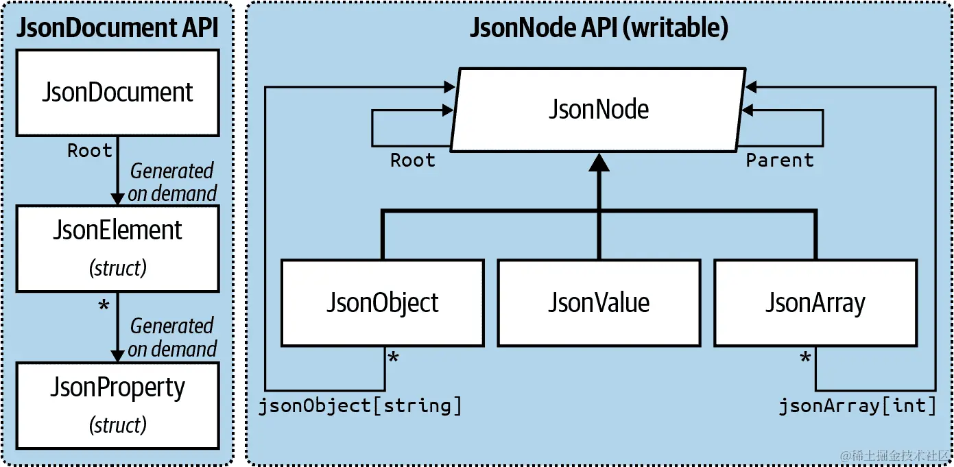 不像JsonDocument,JsonNode是不可释放的,所以我们不必担心在惰性枚举期间可能的释放问题。