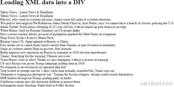 <h1>Loading XML data into a DIV</h1>