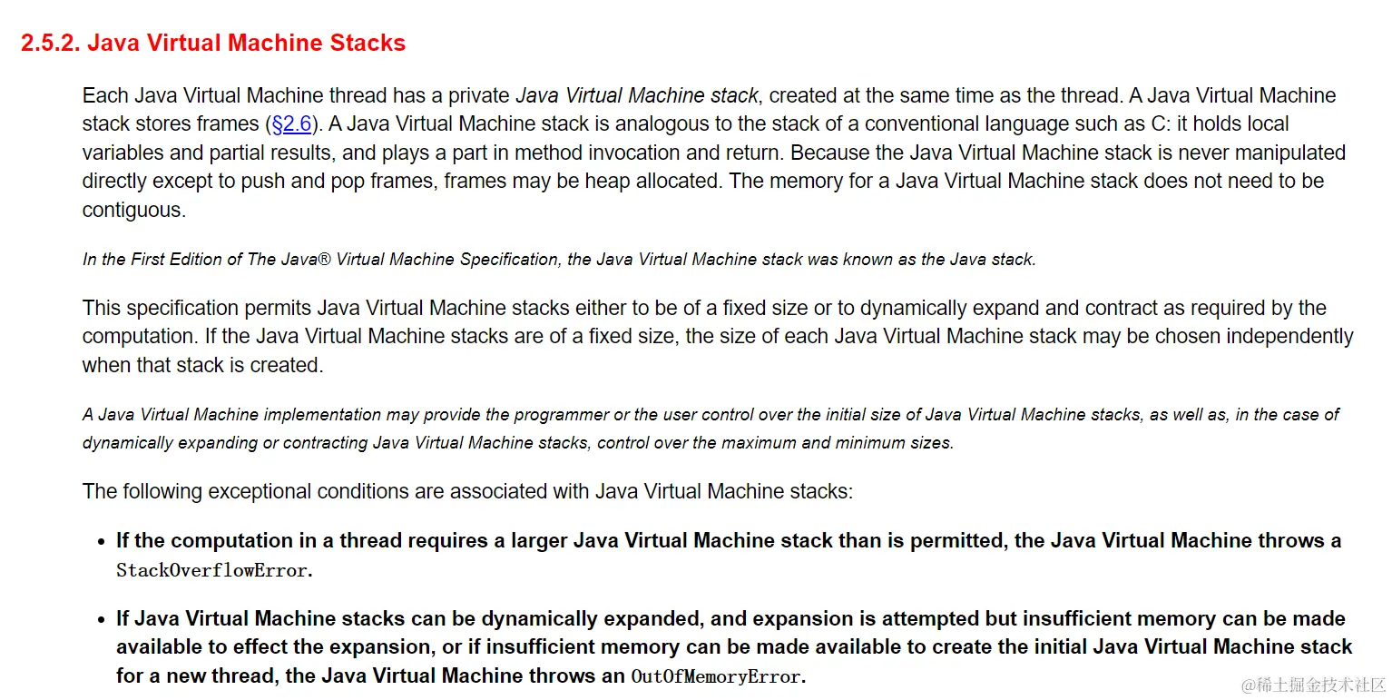 - 如果采用固定大小的 Java 虚拟机栈,那每一个线程的 Java 虚拟机栈容量可以在线程创建的时候独立选定。如果线程请求分配的栈容量超过 Java 虚拟机栈允许的最大容量,Java 虚拟机将会抛出一个