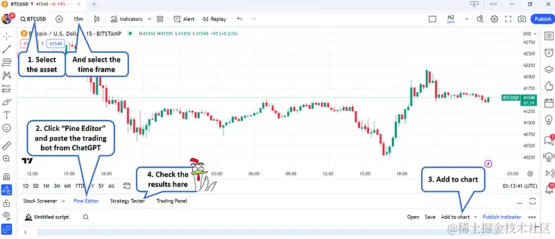 - 点击底部的Pine Editor,然后从 ChatGPT 复制/粘贴交易机器人。