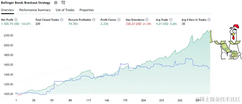 光看图表的话,不得不同意,这是一个相当不错的交易策略,100% 由 ChatGPT 编写。AI真是个好东西!