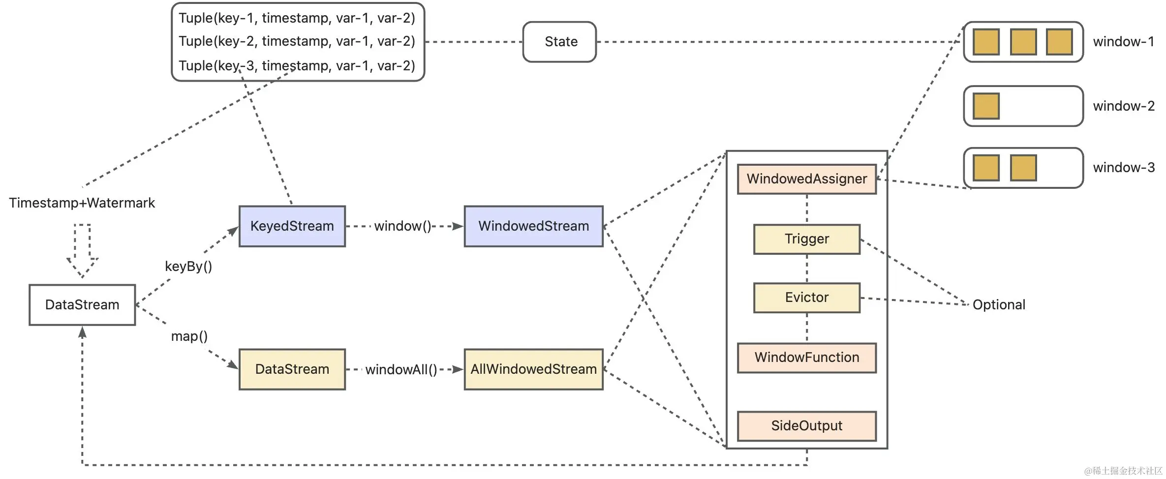 | TimeEvicator | 保留一个时间段的元素,早于这个时间段的元素会被清理 |