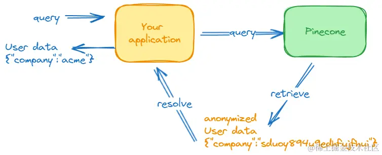 您的应用程序提供在将用户 PII 作为元数据附加到其关联向量之前对其进行哈希的逻辑: