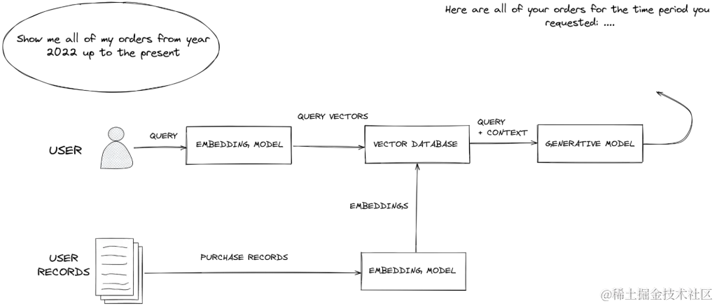 在推理时获取用户的个人上下文(他们的订单历史记录)和一些个人身份信息,并将其提供给生成模型以满足他们的请求。