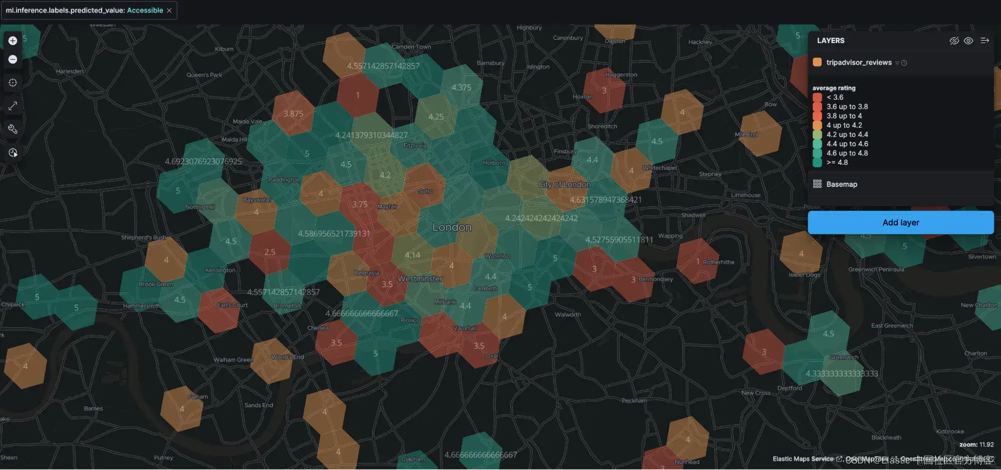 它还提供了可以可视化评论数据的地图服务,在此示例中,我们查看的是伦敦可到达的兴趣点: