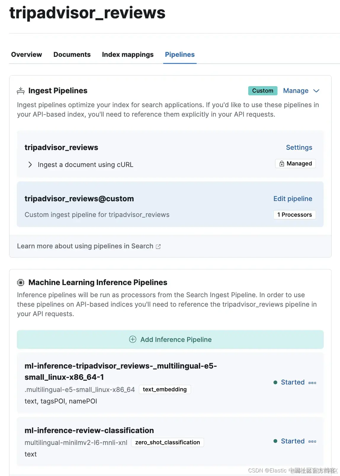 为了采集评论数据,我们将生成一个自定义和推理管道,该管道自动链接到主管道,与索引共享相同的名称。