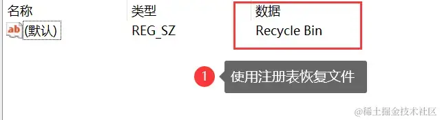 步骤4:修改该项的 【默认】 字符串值为 【Recycle Bin】,重启计算机,查看回收站中是否出现了误删的文件。