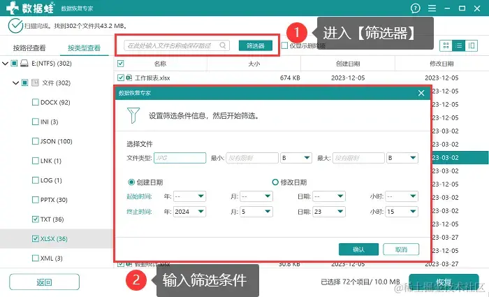 步骤2:如果所扫描到的结果比较多,可以直接进入【筛选器】,输入筛选条件后软件会自动匹配相应文件;