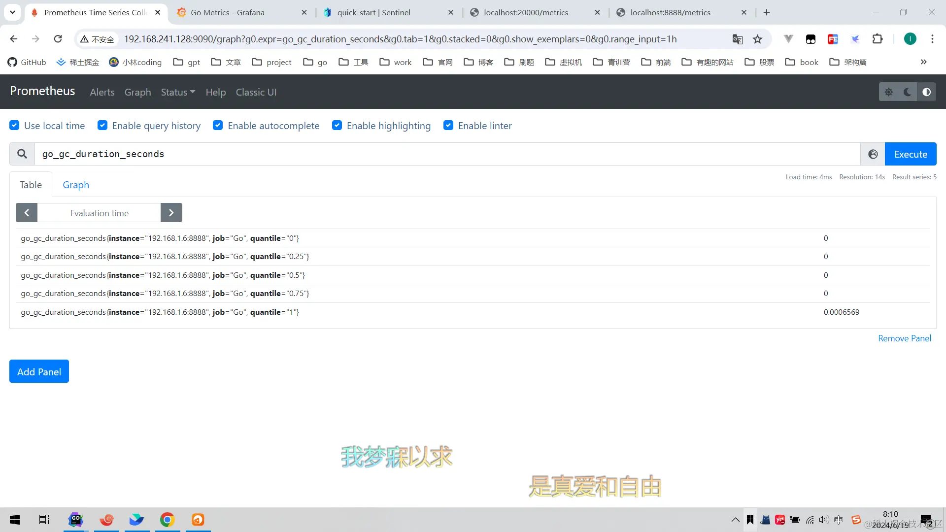 - 通过访问http://localhost:20000/metrics和Prometheus的Web界面,可以直接查看收集到的指标数据。