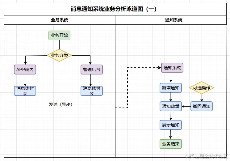 下面是业务简单拆分后的泳道图,基于此图再做关键流程的设计。