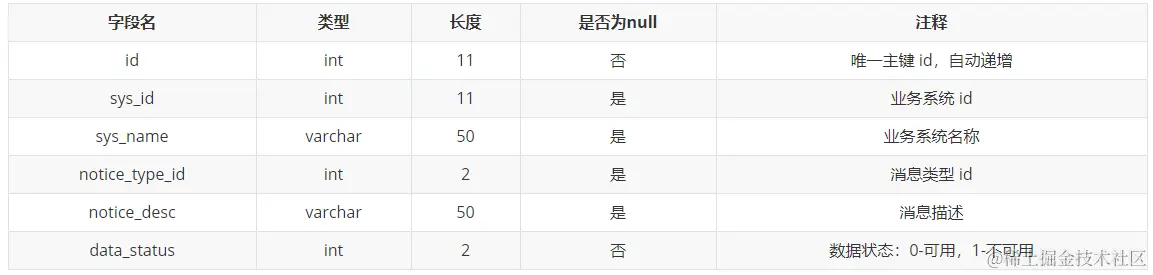 该系统目前设计为3张表,命名为:notification(通知记录表)、notification_config(通知配置表)、external_sys(外部系统表)。