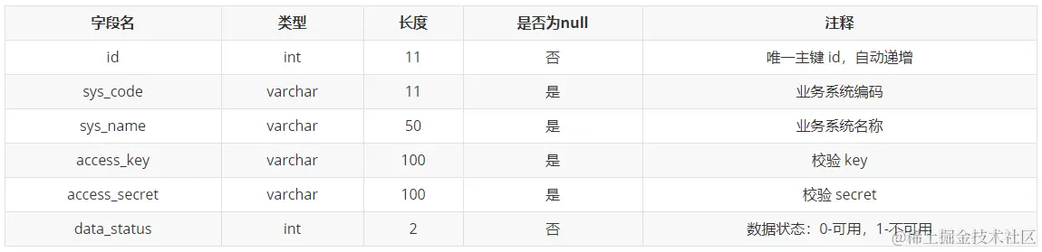 external_sys 为单独记录外部业务系统的信息,用于业务系统调用通知系统接口时的身份校验: