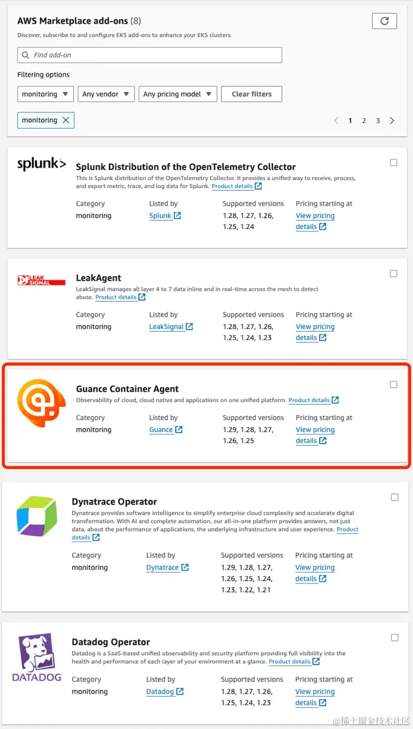 - 亚马逊云科技 Marketplace 「Guance Container Agent」:aws.amazon.com/marketplace…