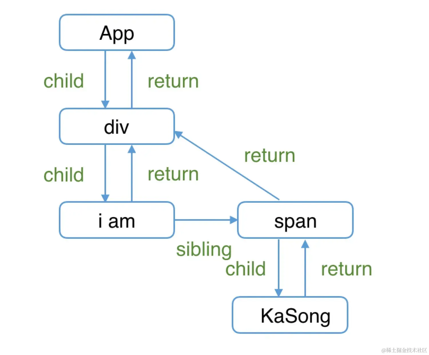 之所以没有 “KaSong” Fiber 的 beginWork/completeWork,是因为作为一种性能优化手段,针对只有单一文本子节点的Fiber,React会特殊处理。