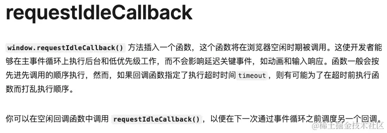 首先,我们要知道一个前置知识点:window.requestIdleCallback。