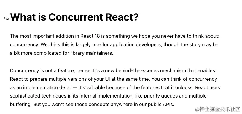 官网描述并发属于新的一种幕后机制,它允许在同一时间内,准备多个版本的 UI,即多个版本的更新。
