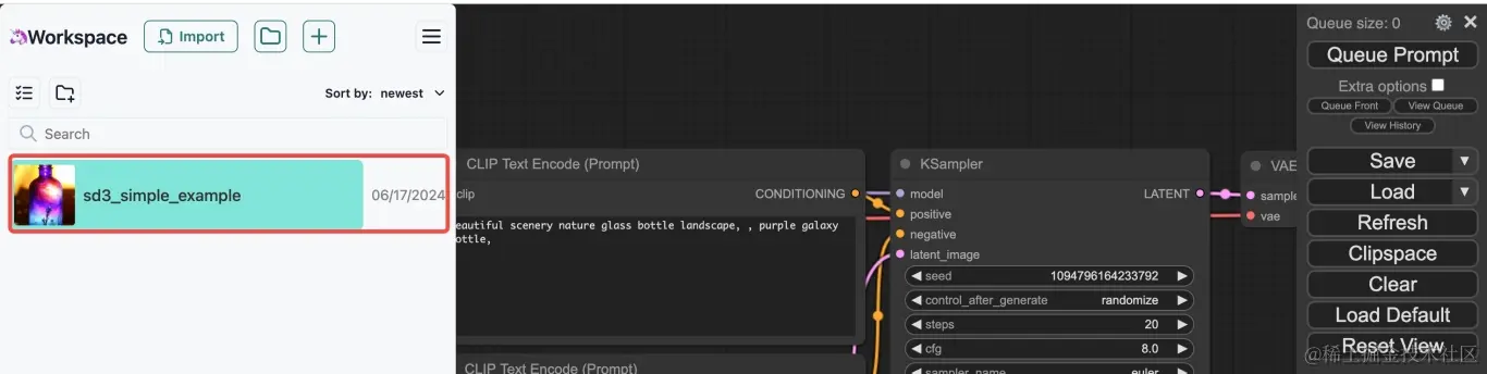 第二步:进入到SD页面后,点击左上角的文件夹,找到sd3_simple_example让后点击选择它。