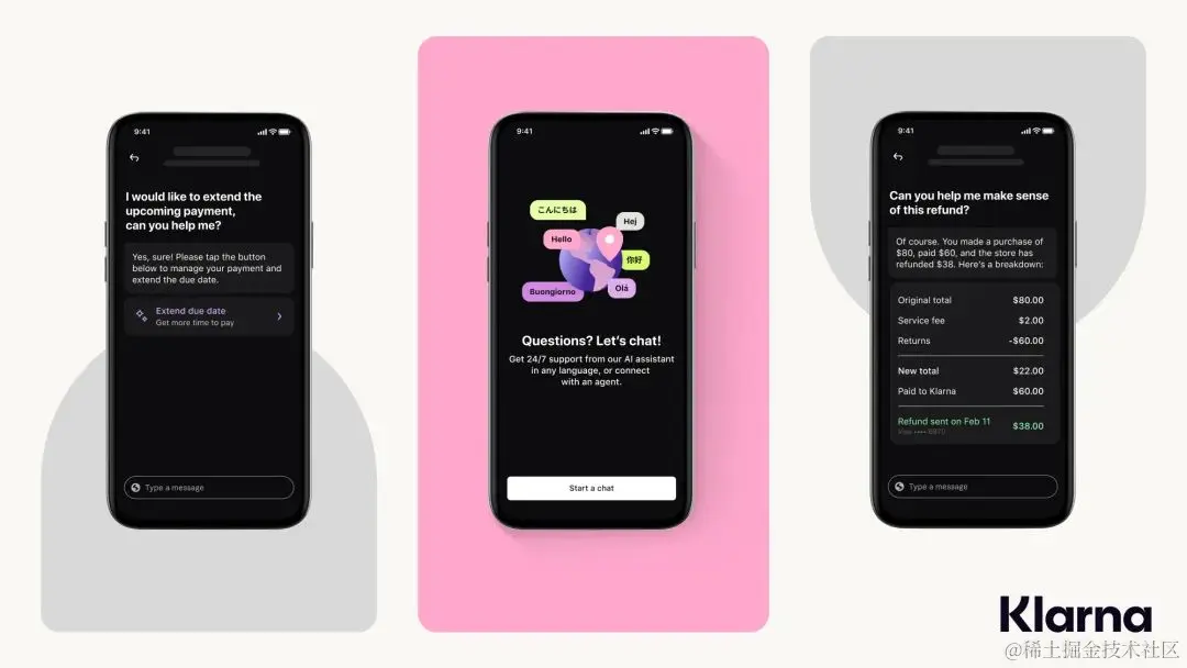 Klarna期望AI助手能够帮助企业管理多语言客户的退款和退货,帮助消费者节省时间和金钱,培养健康的财务习惯,并进一步减少消费者对于财产安全的担忧,最终提升全球1.5亿消费者的购物和支付体验。