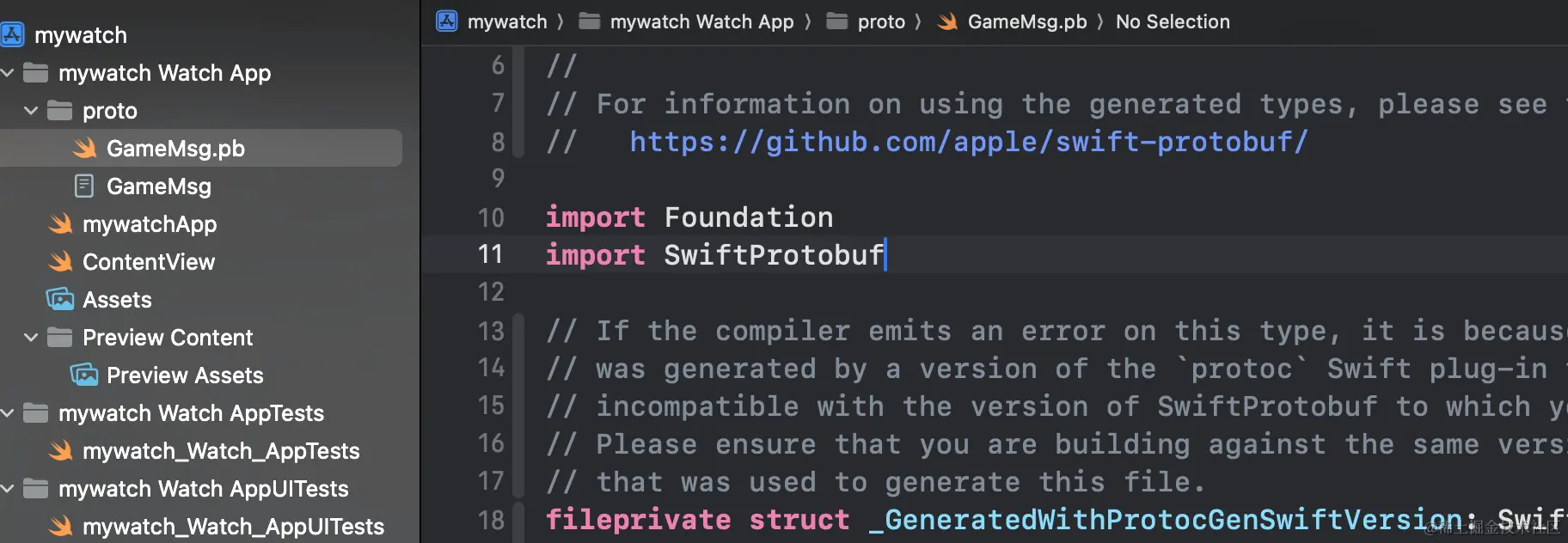运行之后,就会出现一个GameMsg.pb.swift文件,这就是编译后的swift文件: