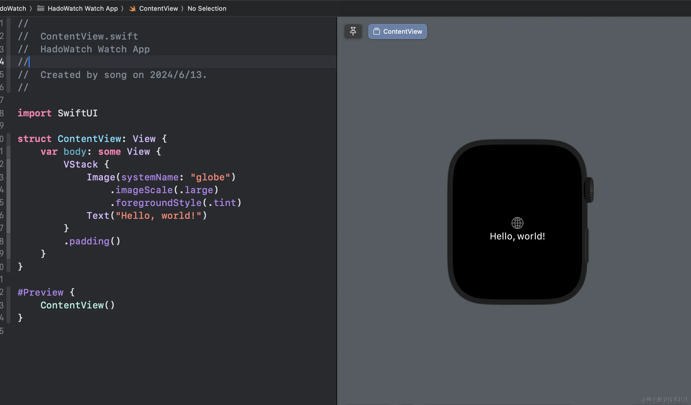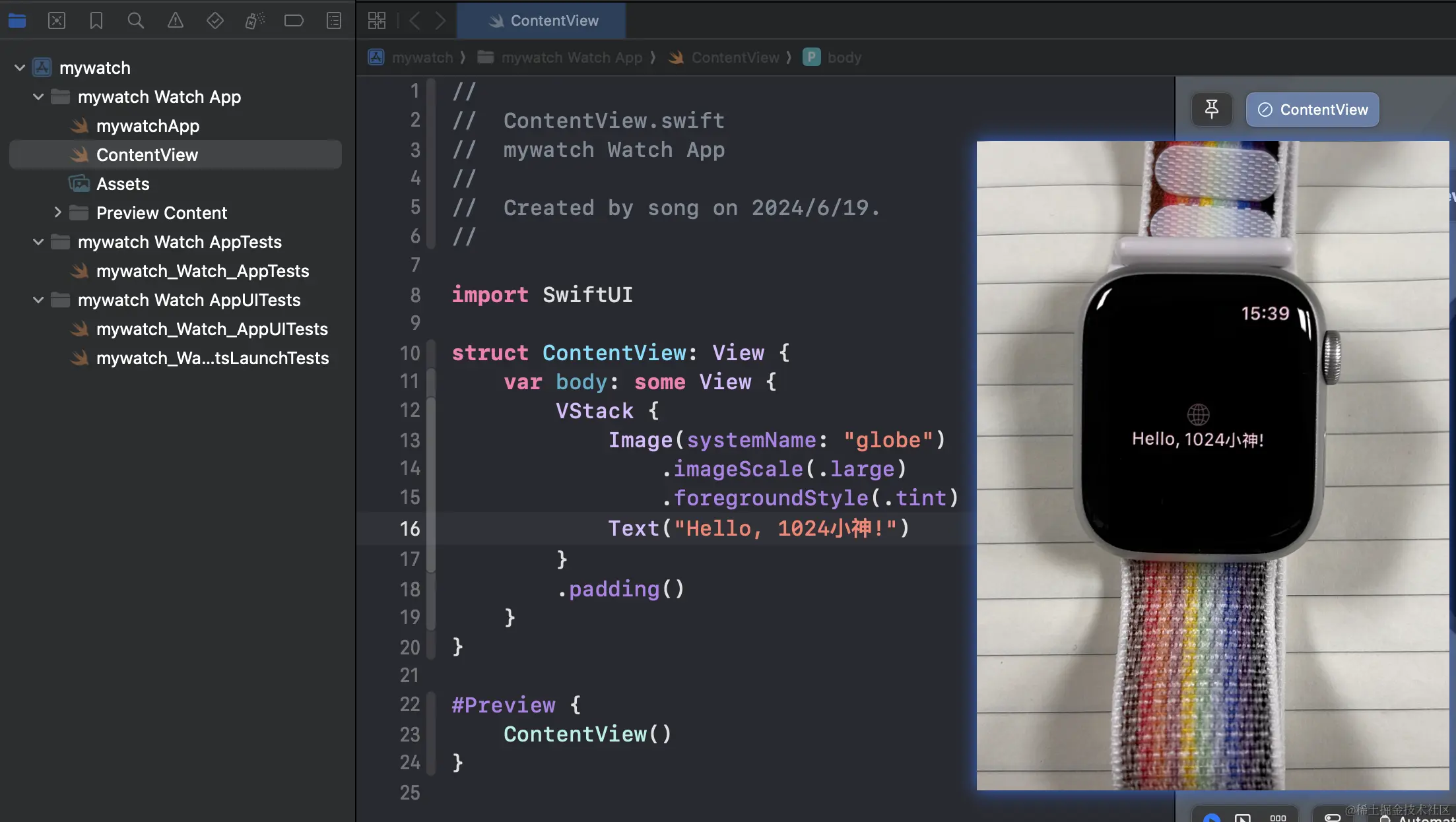 有了这个,就可以在xcode里面点击这个watch设备,并运行项目了,第一次运行可能会需要编译并将项目传输给watch,需要一些时间。