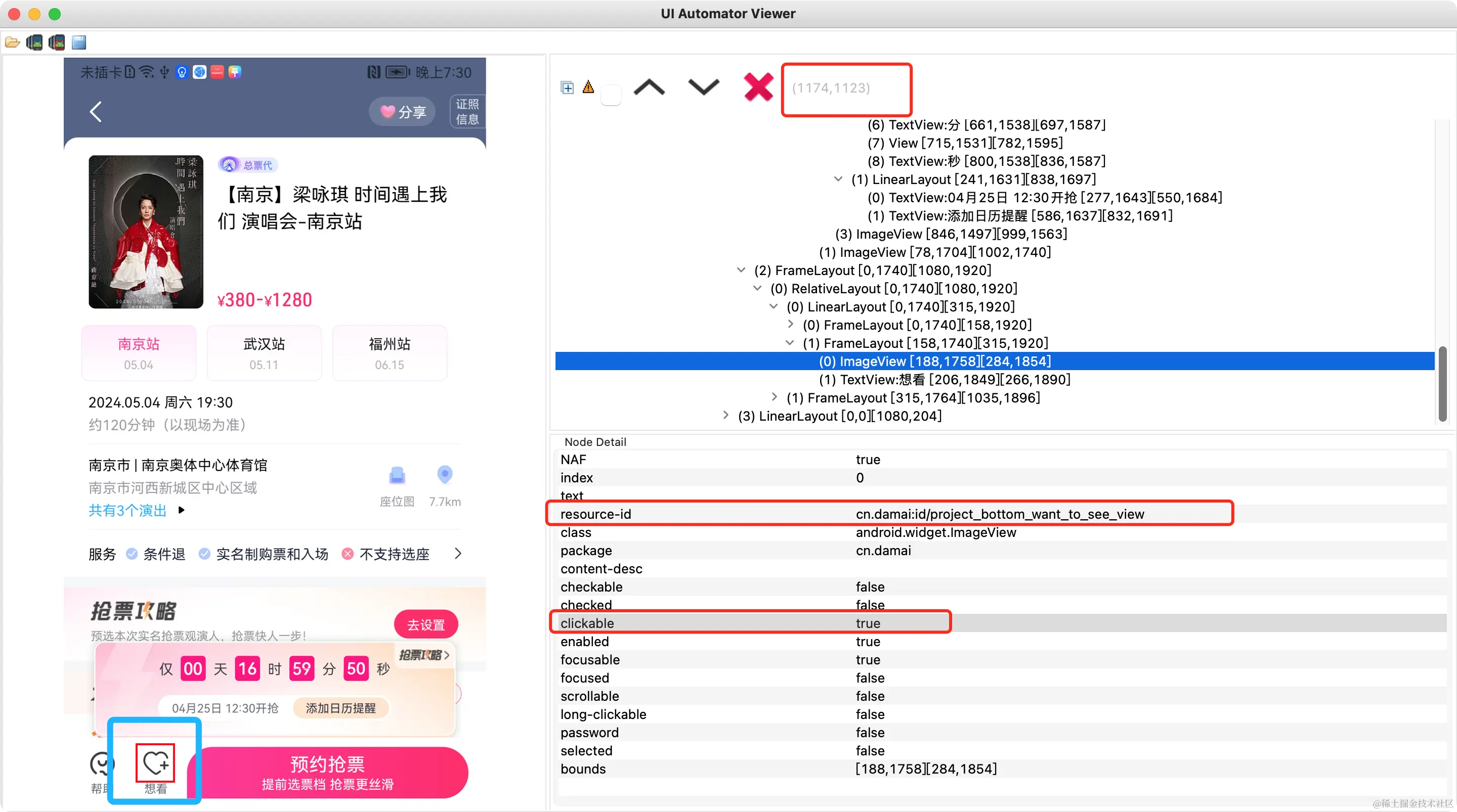 用uiAutormatorViewer查看页面元素所在的x,y轴的布局。然后编写Android代码控制点击等效果。此工具显示出来的界面如下: