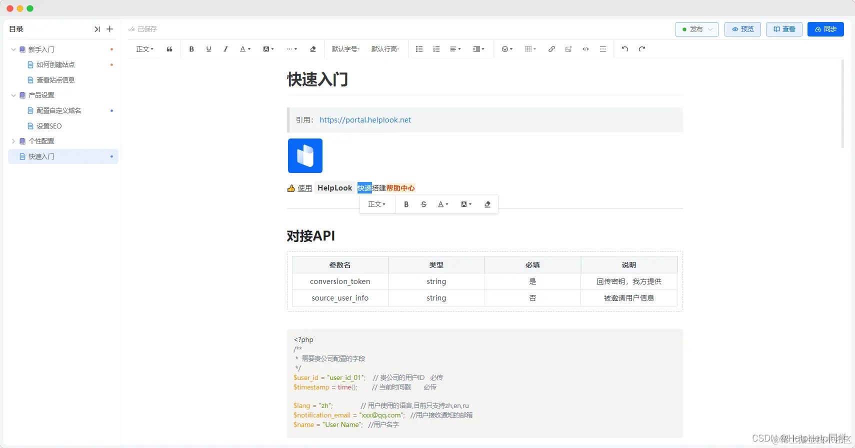 HelpLook提供所见即所得的编辑器,兼容富文本与Markdown,实时保存与发布,让企业无需编程知识即可轻松创建和管理帮助文档。这不仅提高了文档创建的效率,还确保了内容的一致性和专业性。