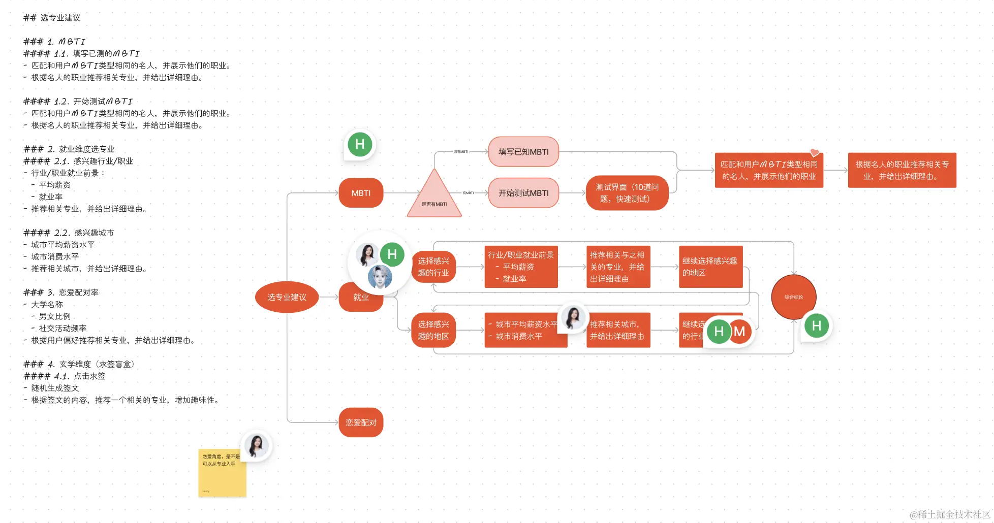 - MBTI匹配:通过与用户的MBTI性格类型相匹配的名人职业进行对比,我们推荐相关专业,并详细说明为何这些专业适合用户的性格特点和潜在优势。