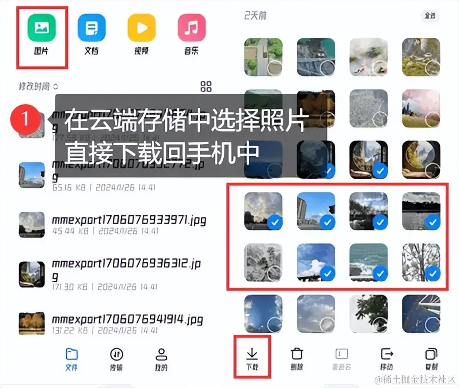 第二步:在文件夹中寻找需要恢复的图片,长按点击下载到本地。