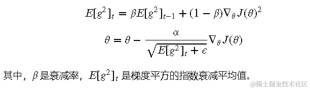 - 解决Adagrad学习率递减问题,保持稳定学习率