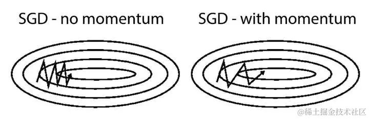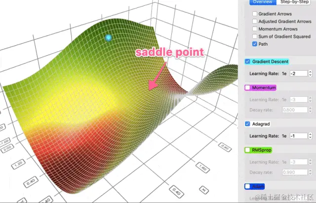 - 加速SGD并减少摇摆,适用于有鞍点的损失函数
