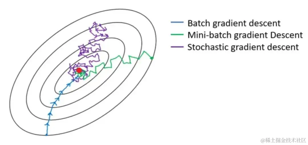 - 批梯度下降法:使用整个数据集计算梯度。