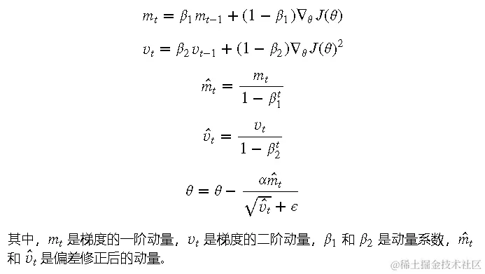 - 结合动量和自适应学习率,综合了动量法和RMSprop的优点,适用于各种应用场景