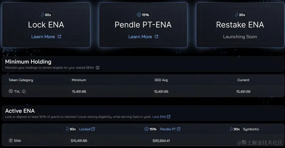 否则,该用户归属于相关钱包的所有未归属 ENA 将被重新分配给锁定 ENA 的其他用户。随着 ENA 在生态中出现更多的用例,为此目的锁定 ENA 的选项也会随之增加。