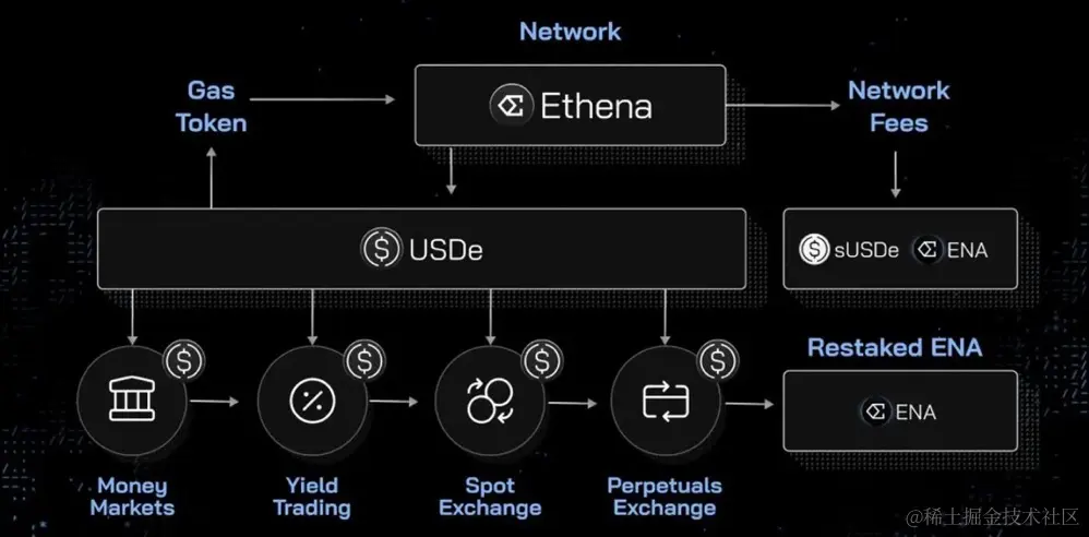 正如 2024 年路线图中详述的那样,Ethena Chain 将专注于在 USDe 作为系统内原生 Gas 代币和支点资产的基础上构建金融应用和基础设施。